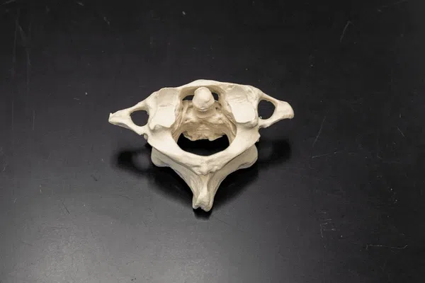 Formant avec le crâne une articulation souple et stable, la première vertèbre cervicale accomplit un travail discret mais indispensable. Sa configuration en anneau permet à la moelle épinière de circuler sans contrainte, tout en supportant le poids de la tête.